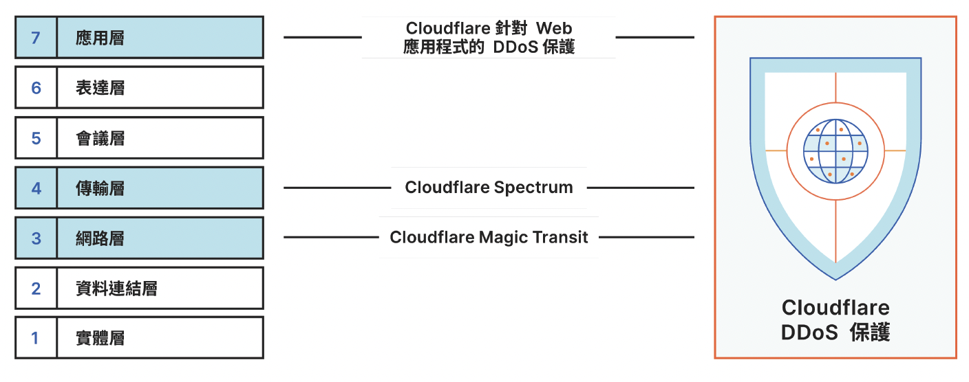 Cloudflare提供三种DDoS保护解决方案,旨在保护您的云端和内部部署网路上的—切。