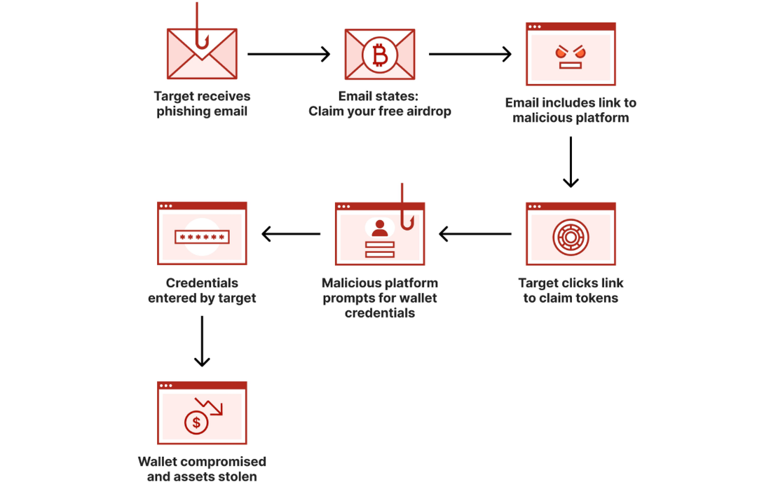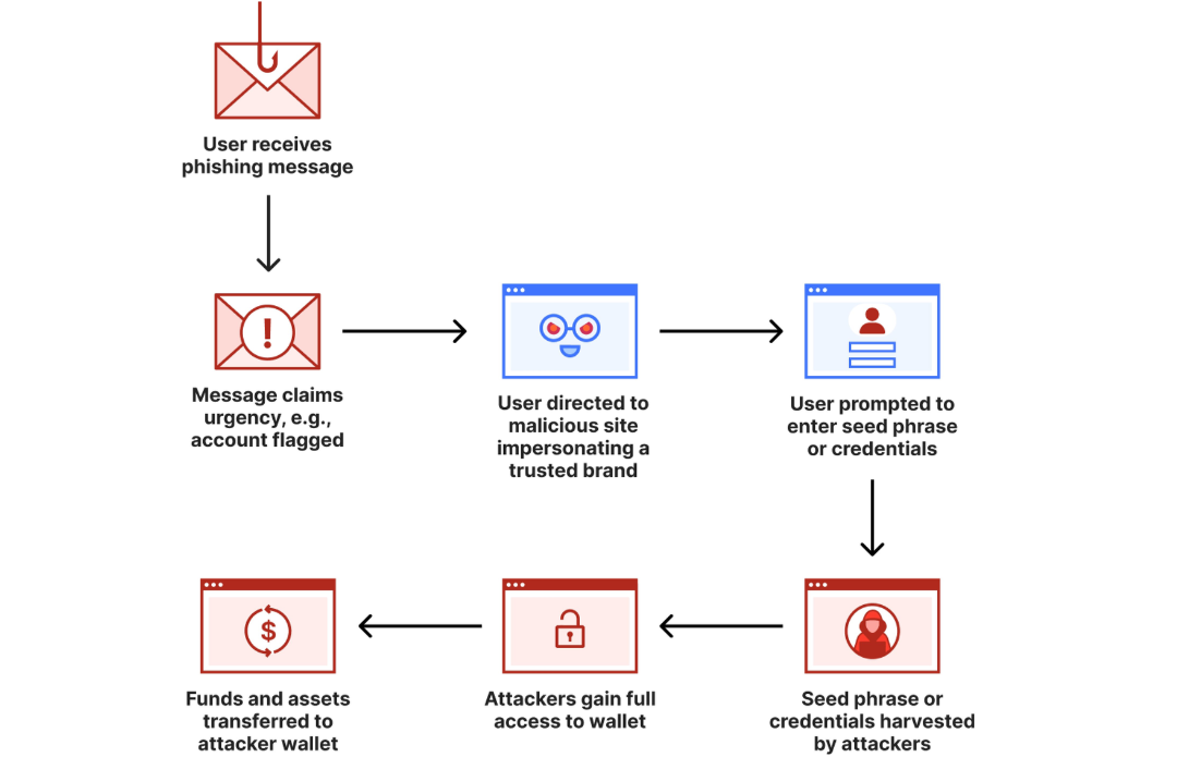 攻擊者利用各種通訊平台,包括簡訊、電話和電子郵件,冒充交易所或錢包提供者的支援團隊。他們聲稱用戶帳戶存在可疑活動,以此製造緊迫感,迫使用戶分享種子短語或雙重身份驗證 (2FA) 等敏感資訊。