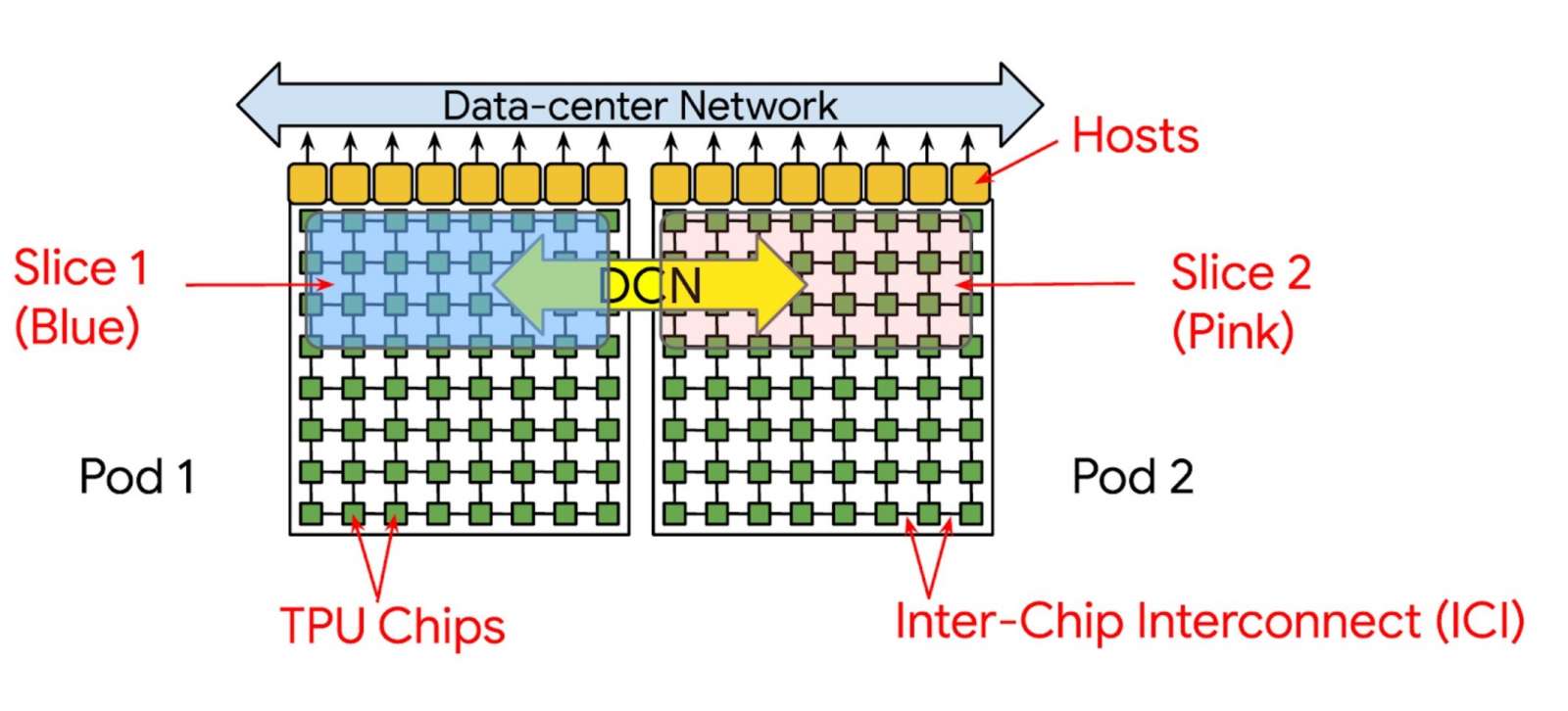 TPU 具有獨特的架構和一種稱為 SPMD 的特定程式設計風格。大型 AI 作業在 TPU 切片上運行,TPU 切片是由透過稱為晶片間互連 (ICI) 的高速網路連接的晶片集合而成。.jpg)