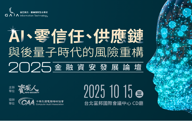 數位轉型加速推進的今日,金融資安已從被動防禦轉型為企業永續治理的戰略核心。面對 2025 年全新的威脅挑戰,台灣金融業正處於關鍵的轉型期,本論壇將匯聚頂尖資安專家與技術夥伴,透過前瞻策略研討、實務經驗分享與創新技術展示,共同探索 AI 世代的資安防護策略,打造新時代金融資安韌性力!